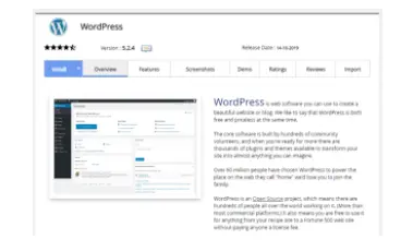 Next, the Softaculous dashboard will appear in front of you. On this dashboard, you will be able to browse software by rating and category. Pick what you would like to install and go to the installation screen. On your display, you will find details regarding that script, which includes an overview, install, demo, screenshot, features, reviews, ratings, import option, and more.