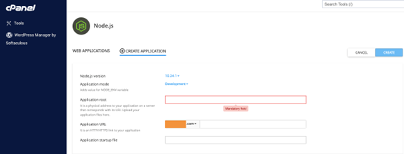 In order to set up a NodeJS application, you will need to fill out three fields. The folder from which all of the NodeJS files will be loaded is the Application root. Any module imports will fail if this field isn’t correct. The URL from which you would like the website to be loaded from is the Application URL.