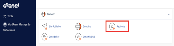 You can forward a domain by using one of our hosting plans and a domain slot that is inside them. Once your hosting plan has a domain added to it, you will need to click on the Redirects button. After you’ve clicked the Redirects button, from the second drop-down, you will need to select the domain name.
