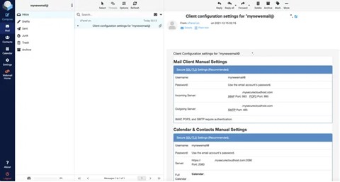 7. The next page will show what the Roundcube interface looks like. This is where you can view new email messages in your inbox or compose a new one. The first email message you received will contain basic information of the newly created email account. If you wish to access this account from a third party email app, for example, such as Outlook, Gmail, or Thunderbird, make sure to enter the details from the “Mail Client Manual Settings” above.