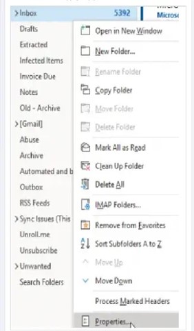 First up, open the Outlook app. Then, right-click on the specific folder for which you want to set up auto-archive. You need to set auto-archive based on a folder, but your inbox folder is also applicable.
