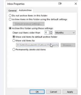 You can also permanently delete emails in that folder. You can choose to either move the old items to the default archive folder or set where they are moved. Depending on how many folders you have, you'll have to set this up for each inbox folder. You might have to repeat this whole process quite a few times. The settings can be changed whenever you desire, and you can always go back and set the auto archive to the default settings.