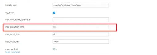 Thirty seconds is the default setting, and you can increase that value. Keep in mind that the value is in seconds, so 2 minutes would be 120, 3 minutes would be 180, and so on. To find the correct value, you can check your plugin, script, or theme’s documentation. You can use the phpinfo() function to verify the current value of the max_execution_time directive and other directives.