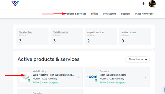 - Scroll to products&services and then select the hosting package you want to upgrade
